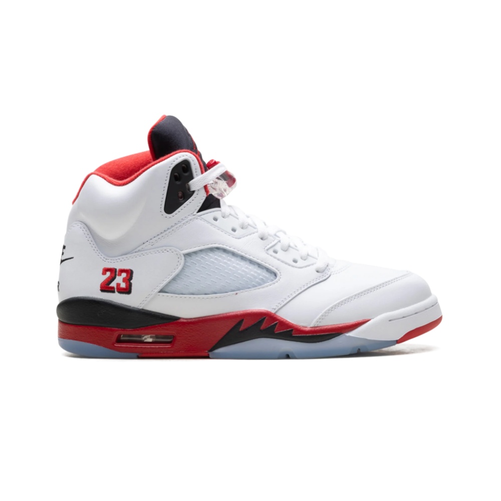 For a sneaker that truly stands out, check out the Air Jordan 5 “Fire Red / Black Tongue.” This memorable design showcases its signature details in a clean white and rich red palette, with the legendary black tongue as a focal point. It delivers a supportive fit and a dynamic aesthetic, making it a valuable addition for any collector.
