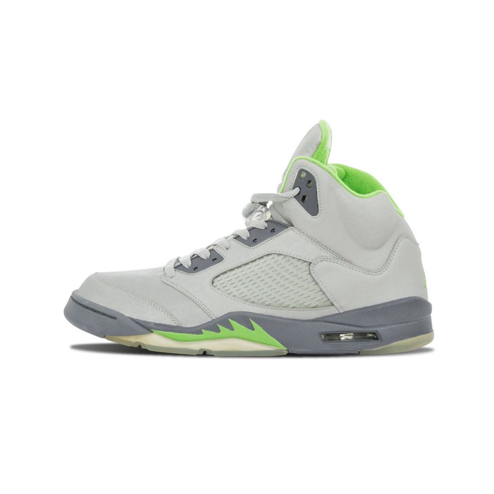 The Air Jordan 5 “Green Bean 2022” brings back the 2006 colorway with a reflective finish that shines when exposed to light in the dark. This May 2022 release of the Jordan 5 “Green Bean” colorway is nearly identical to the original version of the sneaker. The shoe’s grey synthetic upper is treated with a reflective finish that is supposedly inspired by the original sketch of the Jordan 5 by Tinker Hatfield. According to rumors, Hatfield sought to design the Air Jordan 5 with a fully reflective upper, but ultimately scrapped the idea prior to the shoe’s production in 1990. As for the rest of the modern “Green Bean’s” design, bright neon green accents appear on the interior lining, on the sharktooth detailing on the midsole, and on the embroidered Jumpman on the silver reflective tongue and on the heel. The shoe features translucent mesh on the sides and on the lower tongue. Release date: May 28, 2022.